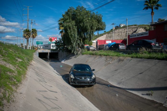 TIJUANA.- Alrededor de las 2:00 de la tarde, ocurrió un accidente vehicular, donde un automóvil termino cayendo a la canalización que se ubica al frente de Plaza Monarca sobre el bulevar Manuel Jesus Clouthier.