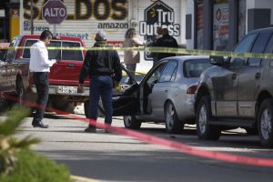 Elementos de Servicios Periciales procesan la escena del crimen, uno más que se suma a la lista de hechos violentos que se han registrado en los últimos días en este municipio.
